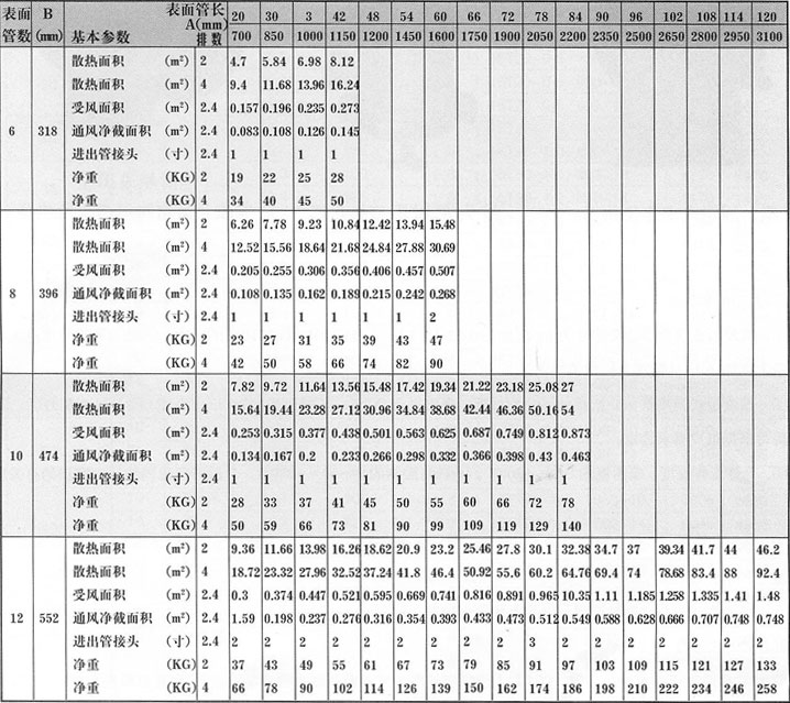 如采用四排,表面管數(shù)為10,管長為42英寸時(shí),則為GL‖-4-10-42。